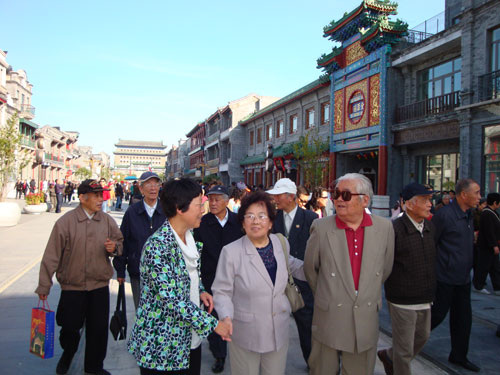 王蘭萍秘書長與黃埔老人們在前門大街游覽