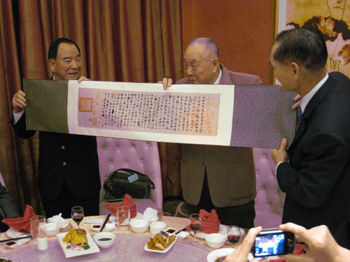 11月26日,臺灣黃復興黃國山黨部一行到杭參訪,浙江省黃埔同學會劉淵會長、徐巖華秘書長等設宴熱情款待。劉淵會長代表省同學會歡迎參訪團的到來,希望兩岸黃埔同學為早日實現國家和平統一團結努力,不斷加強溝通與交流。徐巖華秘書長向客人介紹了本會機關工作情況,并歡迎參訪團的朋友來杭州訪親會友、投資建設,更好更多地開展兩岸交流工作,共同促進兩岸關系積極發展??稻拔南壬韰⒃L團發言。
