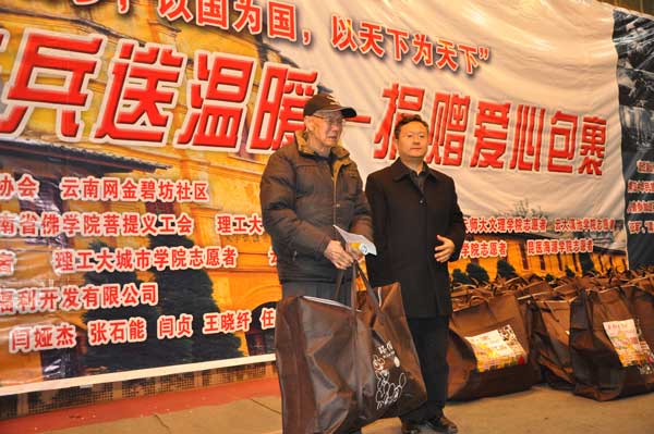 會后,由昆明市大學生愛心家園組織300名大學生,于當天將90份愛心包裹送到在昆抗戰(zhàn)老兵手中。其它“愛心包裹”將用郵寄的方式送至各地、州、市的每個抗戰(zhàn)老兵。