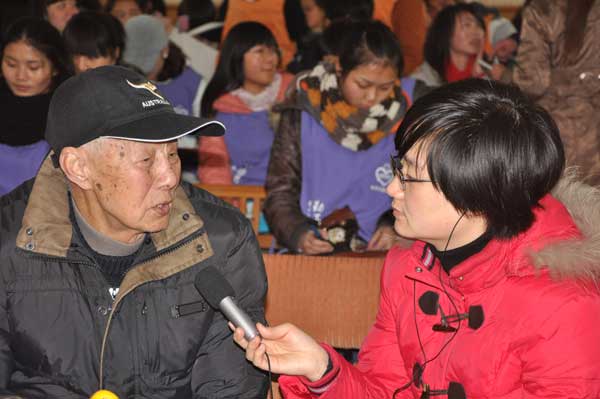 新聞記者現(xiàn)場采訪省黃埔軍校同學會副會長、抗戰(zhàn)黃埔老兵代表劉華(左)
