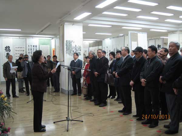 臺灣雙清文獻研究會創辦人陳金乾先生、市書法家協會主席唐運來先生分別致辭,共祝書畫展圓滿成功。市委統戰部副部長劉民選宣布第二屆海峽兩岸書畫名家作品交流展開幕。市黃埔軍校同學會會長路國華,市黃埔軍校同學會秘書長劉正風等出席開幕式。