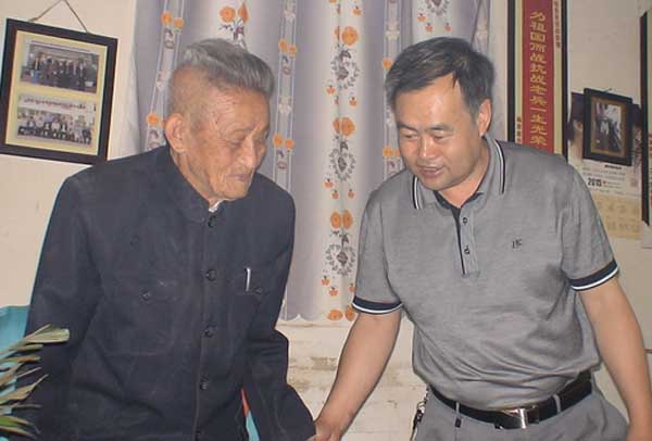 看望慰問(wèn)黃埔老人邢德華(左)