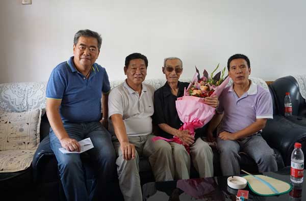 在紀念中國人民抗日戰(zhàn)爭暨世界反法西斯戰(zhàn)爭勝利七十周年之際,為表達對在津黃埔抗戰(zhàn)老戰(zhàn)士的崇高敬意和美好祝愿,8月28日,天津市黃埔軍校同學會組織開展了“功在千秋,向黃埔抗戰(zhàn)老戰(zhàn)士致敬”主題慰問活動,劉正風秘書長帶領機關干部先后看望了岳哲安、閻啟志、李勤功、楊岑峰、吳文學等在津黃埔抗戰(zhàn)老戰(zhàn)士,對他們?yōu)槊褡濯毩⒔夥攀聵I(yè)作出的貢獻表示由衷的敬意!向他們敬獻了鮮花并發(fā)放了2015年度在津黃埔抗戰(zhàn)老兵生活困難補助金。