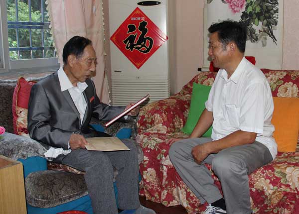 在中秋和國慶雙節前夕,江西省黃埔軍校同學會秘書長萬堅帶領機關全體工作人員,走訪了省同學會常務副會長趙昌然、副會長金戈、廖宇陽,理事萬開智、陳和潤及部分黃埔同學,并向全省每名黃埔同學發放了節日慰問金。萬堅代表省委統戰部和省黃埔軍校同學會向全省黃埔同學致以節日的問候,祝愿他們節日快樂,晚年幸福。黃埔同學紛紛來信來電,對黨和政府的關懷表示衷心感謝。