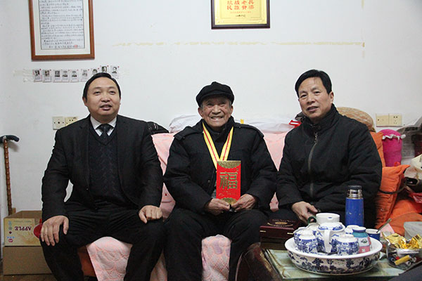 1月29日,江西省黃埔軍校同學(xué)會秘書長萬堅,省黃埔親友聯(lián)誼會會長周亮、副會長秦洪淵和同學(xué)會機關(guān)工作人員攜帶慰問物資和慰問金,拜望了省黃埔軍校同學(xué)會常務(wù)副會長趙昌然。萬堅詳細(xì)詢問了趙老的健康狀況,向他匯報了一年來同學(xué)會的主要工作和未來一段時間的工作設(shè)想。趙老聽后,頻頻豎起大拇指表示肯定和贊賞。由于身體原因,語言能力受到影響,但他卻仍然一字一字地說道:“共產(chǎn)黨團結(jié)我們一起,好??!”
