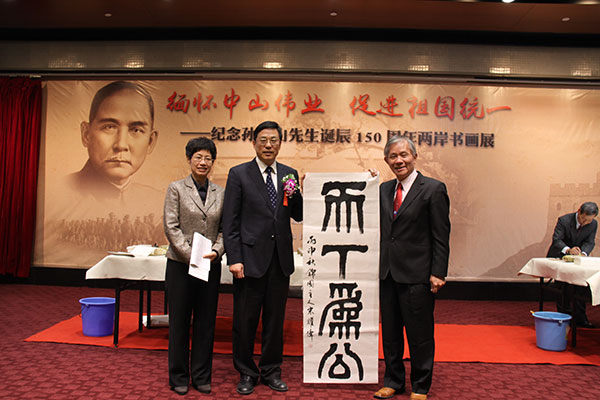 10月21日,由北京市黃埔軍校同學(xué)會、臺灣華夏創(chuàng)意文化交流協(xié)會主辦,北京市臺灣同胞聯(lián)誼會、西城區(qū)委統(tǒng)戰(zhàn)部協(xié)辦的《緬懷中山偉業(yè) 促進(jìn)祖國統(tǒng)一》—紀(jì)念孫中山先生誕辰150周年兩岸書畫展在北京臺灣會館舉辦。