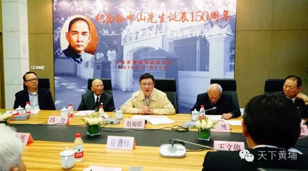 11月21日,上海市黃埔軍校同學會舉行“紀念孫中山先生誕辰150周年——中山思想與黃埔精神”座談會。市委統戰部副部長趙福禧出席并講話。臺灣各友好團體代表,市黃埔軍校同學會副會長呂力,親屬聯誼會名譽主委劉豫陽、主委楊逢珉出席會議。