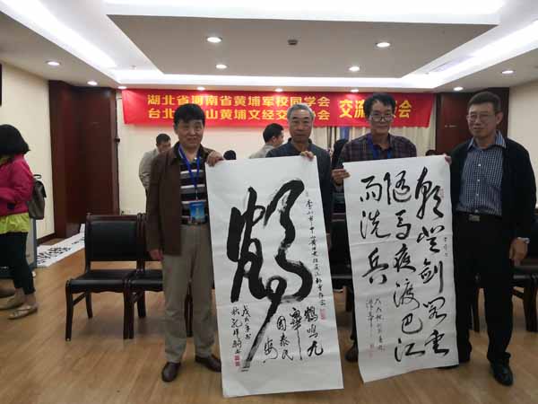 參訪團(tuán)與黃埔后代進(jìn)行書法交流