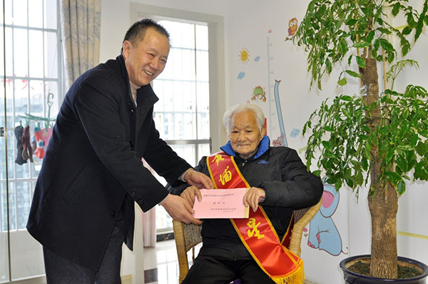 2019年4月4日,貴州省黃埔軍校同學會繼續(xù)開展“百歲黃埔老人祝壽”專項活動。受楊震環(huán)秘書長委托,辦公室主任羅永生一行前往湄潭縣,為百歲黃埔同學夏禹聲祝賀百歲壽辰送去慰問金,并為老人佩戴由《黃埔》雜志社為百歲黃埔同學定制的“黃埔壽星”綬帶。