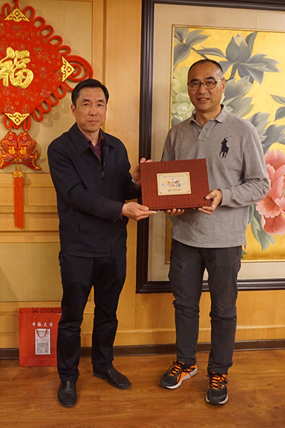 天津市黃埔軍校同學會秘書長商駿與張聿文團長互贈禮品
