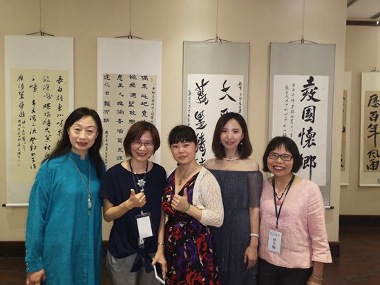 6月30日,以少帥足跡為主題的吉臺兩地書畫交流展在長春成功舉辦,來自臺灣新竹縣兩岸藝文產(chǎn)經(jīng)交流協(xié)會的臺灣新竹縣藝術(shù)交流代表團一行35人,前來助陣交流展。藝術(shù)展演現(xiàn)場氣氛異常熱烈,兩岸藝術(shù)家攜手創(chuàng)作,聯(lián)袂獻藝,譜寫了一曲吉臺交流發(fā)展的佳音美樂。書法家、吉林省黃埔后代王舒勃女士的一幅紀念少帥張學良抗日生平的書法佳作獲得了臺灣藝術(shù)家的廣泛贊譽。臺灣藝術(shù)家紛紛要求與王舒勃女士合影,在與臺灣來賓一番交談后,當?shù)弥跏娌渴屈S埔后代時,團員們更加開心,雙方倍感親近,臺灣訪友拉著王舒勃女士的手親切合影!吉臺藝術(shù)家同框,十分難得,王舒勃女士的另一幅作品被收錄到少帥足跡兩岸書畫交流展作品集中!
