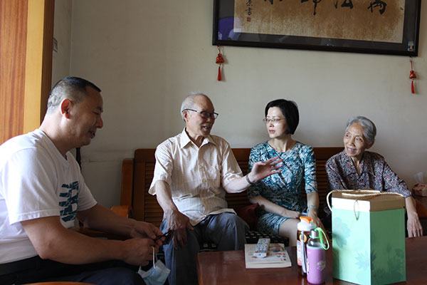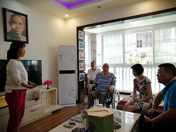 在每位黃埔理事家中,傅秘書長(zhǎng)都與黃埔理事促膝而坐,拉家常,親切地詢問老人身體和生活情況。黃埔理事們雖年事已高,仍堅(jiān)持利用收音機(jī)、電視、書報(bào)等了解臺(tái)海局勢(shì)、時(shí)事政治,學(xué)習(xí)黨的十八大、十九大會(huì)議精神、全國“兩會(huì)”精神和黃埔工作動(dòng)態(tài)。黃埔理事大多身體硬朗,精神矍鑠。張修忠會(huì)長(zhǎng)99歲仍然堅(jiān)持手腦鍛煉,堅(jiān)持學(xué)習(xí)掌握時(shí)事;95歲高齡的傅先慶理事提前把歷年來獲得的各級(jí)紀(jì)念章都整齊佩戴在胸前,舉起右手行標(biāo)準(zhǔn)軍禮,滿眼自豪和肅敬。彭壽銘理事向大家展示自己的微信群和朋友圈,并介紹通過微信朋友圈他與近百位黃埔老人及親屬后代建立了聯(lián)系,秘書長(zhǎng)笑著稱贊彭老是最潮90后。