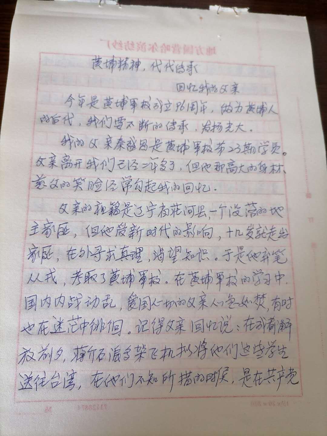 黃埔23期秦勝昌女兒秦毅回憶文章