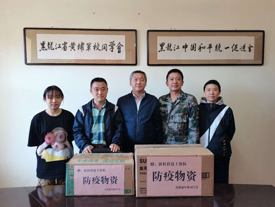 座談會后,省黃埔軍校同學會機關(guān)向駐村扶貧工作隊捐贈了防疫物資。