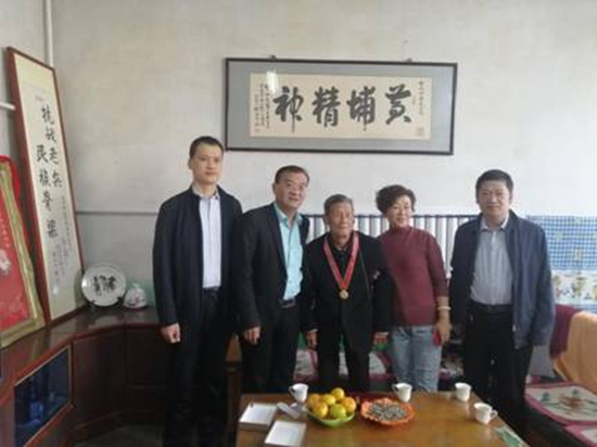 10月20日至22日,山東省黃埔軍校同學會秘書長、秘書處處長郭廣勇帶領機關工作人員,奔赴濟南、泰安、臨沂等地,來到郭毅杰、劉俊英、祁連興、傅柏齡家中,向他們或其親屬送上紀念章和慰問金,傳達習近平總書記和黨中央對偉大抗美援朝精神的高度肯定。詳細了解老人們的生活情況和身體狀況,感謝他們對保家衛國作出的貢獻,表達了對他們的親切問候和崇高敬意,祝愿他們身體健康、家庭幸福。