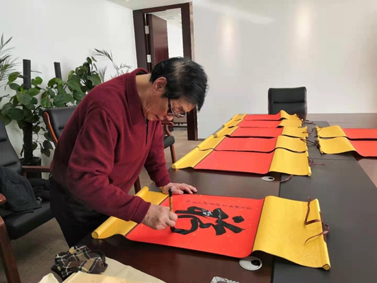 天津市黃埔軍校同學會積極發揮天津市黃埔后代聯絡平臺——黃埔天津書畫會作用,由黃埔天津書畫會會長黑成義親自書寫包含“喜慶”與“祝福”之意的“福”“壽”書法卷軸,在春節慰問之際送給會員。“喜慶祥和、送福到家”的美好寓意及誠摯祝福讓黃埔會員既感動又溫暖,對該會工作的細致周到深表感謝。