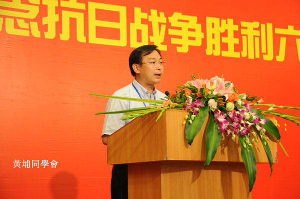 他說,在中華民族面臨生死存亡的危難時刻,三十萬黃埔師生同仇敵愾,在日本侵略者的殺戮面前,無所畏懼,挺身而出,奮戰在各個抗日戰場上。十幾萬黃埔師生血灑疆場,涌現出左權、戴安瀾、謝晉元、羅芳珪、劉志丹、趙一曼等一大批著名抗日英雄。他們同全國軍民一道,在硝煙滾滾的抗日戰場上,以自己的血肉之軀,保衛神圣的家園,為國家的獨立和民族的生存,書寫了一幅幅壯麗的畫卷,使愛國、革命的黃埔精神在抗日戰爭中得到錘煉和升華。