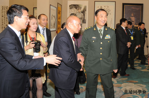 徐向前元帥之子徐小巖將軍(右)與黃埔軍校同學會會長林上元(中)、副秘書長杭元祥(左)參觀書畫展