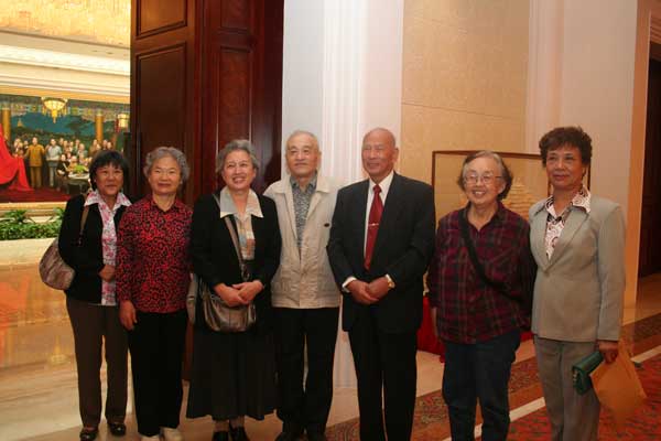 左起黃維之女黃慧南、李默庵之女李碧茹、黃雍之女黃勝利、杜伯園理事、林上元會長、左權(quán)之女左太北、林會長夫人李艷