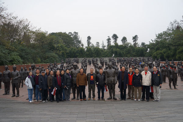參訪團在大邑縣建川博物館內中國壯士群雕廣場前合影