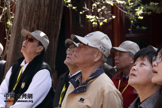 4月9日上午,由來自臺灣的統派人士和退役將領近70人組成的參訪團一行參觀洛陽白馬寺。(中國臺灣網 李丹 攝)