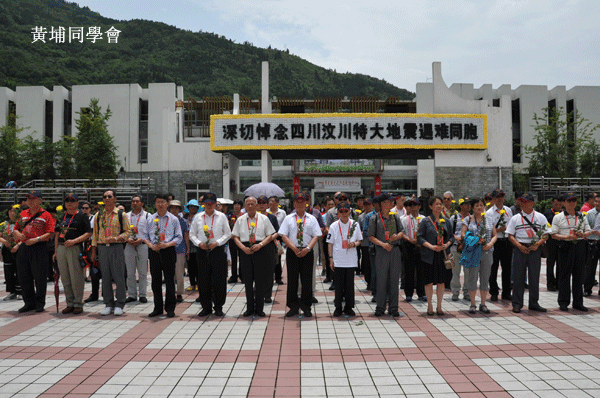 兩岸黃埔人映秀獻花悼念地震遇難者
