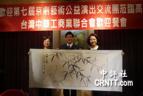 北京京劇團致贈“節節高升”予李玉文。(中評社 高易伸攝)