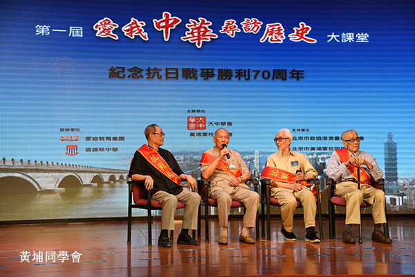 7月2日,由香港大中華會和黃埔軍校同學會聯合舉辦的第一屆“愛我中華 尋訪歷史”大課堂活動,在北京愛迪學校隆重舉行。身披“抗戰老軍人”紅色綬帶、幾位已過鮐背之年的抗戰老兵,向兩岸三地千名師生講述著烽火歲月里民族的苦難與輝煌。
