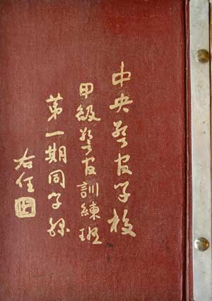 筆者收藏一冊《中央警官學(xué)校甲級警官訓(xùn)練班第一期同學(xué)錄》(以下簡稱本錄),民國卅六年(1947)出版,縱27厘米,橫19厘米,紙質(zhì)精裝,紫色漆布封衣,品相甚佳。封面居中印于右任題“中央警官學(xué)校甲級警官訓(xùn)練班第一期同學(xué)錄”燙金字。內(nèi)頁有:1.序言、題詞;2.總理遺囑、校長肖像;3.校訓(xùn)、校徽、校旗、校歌;4.長官、教授、教官、職員肖像;5.生活剪影;6.本總隊同學(xué)近照(1500幀);7.本總隊同學(xué)通訊錄;計328頁。