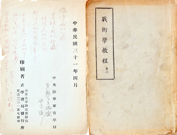 2014年初春,鵬城籌備黃埔軍校90周年紀(jì)念展。主辦人在寒舍挑選了20余件藏品,在交借復(fù)核時(shí),筆者將其中一本《戰(zhàn)術(shù)學(xué)教程》撿出,提議此書不宜參展,主辦人不知其所以然,便追問原由,我解釋說,版權(quán)頁是書的身份證,其版權(quán)頁上盡管印有“中央陸軍軍官學(xué)校”,可是此校非彼校(重慶政府中央軍校),這本是南京汪偽中央軍校出版的教程。如何辨別呢?就是考證版權(quán)頁中的三項(xiàng)文字信息——一時(shí)間:中華民國三十一年四月;二編輯者:中央陸軍軍官學(xué)校;三印刷者:武學(xué)書局發(fā)行所,地址南京太平路北首路西,電話二二一五七號(hào)轉(zhuǎn)。僅看前一、二項(xiàng)難分真?zhèn)危挥械谌?xiàng)中的印刷者地址、電話暴露汪偽中央軍校身份,因?yàn)榇藭r(shí)的南京已在汪偽政府統(tǒng)治之下,所以重慶政府中央軍校的教程,絕不可能印有南京的地址和電話。意外的是,不知何人在版權(quán)頁空白處憤懣以詩言志,詩曰:“惱壞了我的心腸,苦段了我的肝臟。那里是我的家鄉(xiāng),那里是我的歸宿希望。千軍萬軍踏著我的身上,我還在惆悵,我還在迷妄。空蒼助我,還要我助空蒼?三十一年十二月八日十二授教班”。后經(jīng)考證此詩為汪偽中央軍校第1期學(xué)生總隊(duì)炮兵隊(duì)孫嵐所作,且有時(shí)間、地點(diǎn)相佐證。顯而易見,是書如參展就會(huì)魚目混珠誤人子弟,貽笑大方;若為研討汪偽中央軍校史,則另當(dāng)別論。為此,筆者專門搜集有關(guān)汪偽中央軍校刊物,如:偽中央軍校主編的《建軍月刊》第13期,紙本16開、40頁,中華民國三十二年一月十五日發(fā)行,刊名“建軍月刊”四個(gè)字是汪兆銘(即汪精衛(wèi))所書。還有日本情報(bào)局1943年1月出版的《寫真周報(bào)》第265號(hào),紙本16開、24頁,該刊載有多幅偽中央軍校學(xué)生訓(xùn)練圖片。吾以為照錄圖文以饗讀者,有利于黃埔軍校文物收藏研究,正如藏界所云:孰不知假,焉能知真?