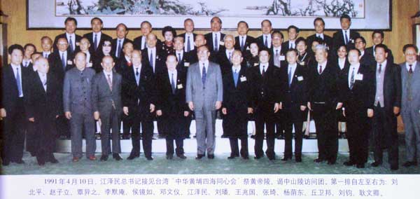 1991年4月10日,江澤民總書記接見臺(tái)灣“中華黃埔四海同心會(huì)”祭黃帝陵、謁中山陵訪問團(tuán)