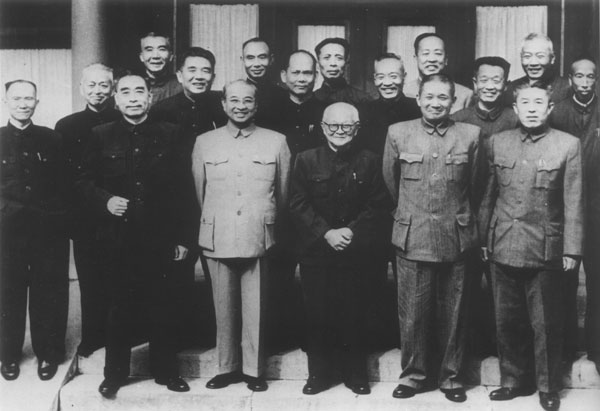1960年10月19日,周恩來同志在北京頤和園親切會見當年的黃埔校友。前排左起:李奇中、周恩來、陳賡、邵力子、張治中、鄭洞國。中排左起:黃雍、唐生明、覃異之、侯鏡如、杜聿明、周振強。后排左起:王耀武、楊伯濤、鄭庭笈、周嘉彬、宋希濂