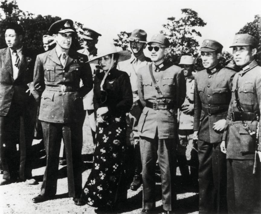 1943 年,蔣介石(右三)、宋美齡(右四)夫婦與蒙巴頓將軍(左一)、