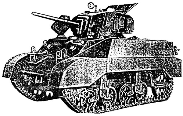 戰車營后來增加了M4A4謝爾曼中型坦克20輛,戰車全重33噸,坦克上裝有一門75毫米坦克炮,配備機槍3挺(內有高射機槍1挺),無線電報話機2臺。戰車營另有M2A1履帶式輕裝甲車(“白鼬式”輕裝甲車,6噸)19輛,每輛車上有機槍一挺,20毫米機關炮一門,無線電報話機一臺。每輛車上有車長(掌握無線電報話機)、機槍手、炮手和駕駛員4人。