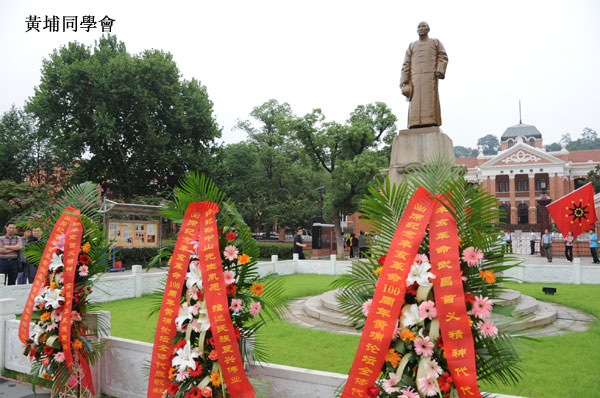 參加黃埔論壇活動(dòng)的全體代表向向?qū)O中山銅像敬獻(xiàn)了花籃