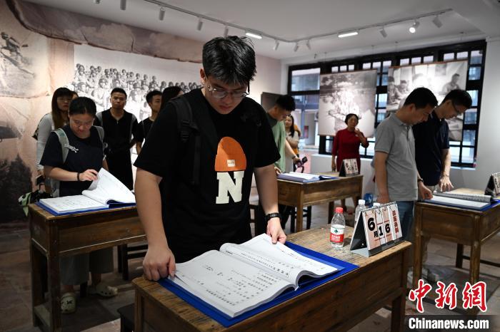 6月16日,廣州市黃埔區,黃埔軍校舊址紀念館重新開館。其中,全新策劃布展的“國共合作的不朽豐碑——大革命中的黃埔軍校(1924-1927)”校史展,通過300余張歷史圖片,以“歷史實物+多媒體還原”的形式,呈現了國共合作時期的黃埔軍校歷史,展出170件套展品,除館藏的82件套外,其余均為來自全國20個單位、黃埔后人及藏家的藏品。“黃埔同學錄查詢室”數據庫正式上線,現已收錄的黃埔軍校學員資料超過17萬人,支持以姓名、籍貫等各種方式模糊查詢。圖為參觀者在“黃埔同學錄查詢室”翻閱黃埔軍校學員資料。中新社記者 陳楚紅 攝