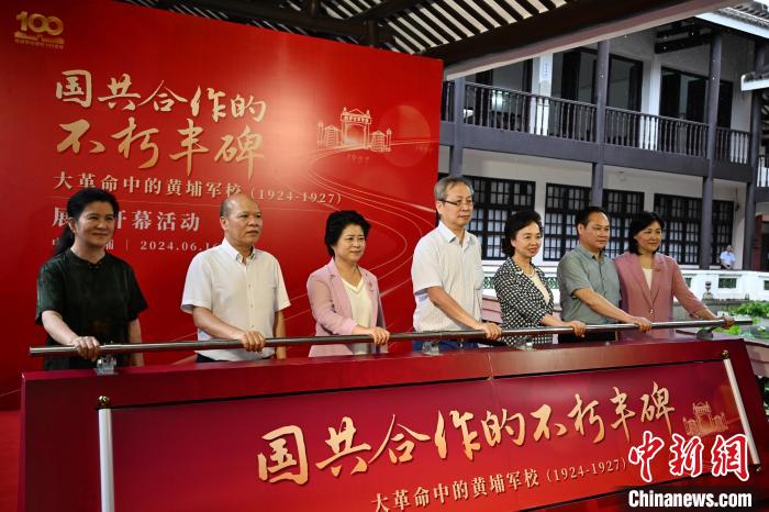 6月16日,廣州市黃埔區,黃埔軍校舊址紀念館重新開館。其中,全新策劃布展的“國共合作的不朽豐碑——大革命中的黃埔軍校(1924-1927)”校史展,通過300余張歷史圖片,以“歷史實物+多媒體還原”的形式,呈現了國共合作時期的黃埔軍校歷史,展出170件套展品,除館藏的82件套外,其余均為來自全國20個單位、黃埔后人及藏家的藏品。“黃埔同學錄查詢室”數據庫正式上線,現已收錄的黃埔軍校學員資料超過17萬人,支持以姓名、籍貫等各種方式模糊查詢。圖為校史展開展儀式。中新社記者 陳楚紅 攝