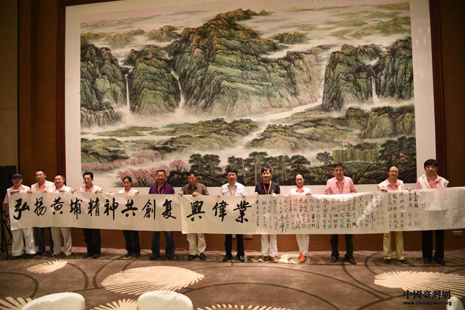 兩岸退役將軍在“弘揚(yáng)黃埔精神 共創(chuàng)復(fù)興偉業(yè)”墨寶上簽名。(張宏微攝 中國臺灣網(wǎng)發(fā))