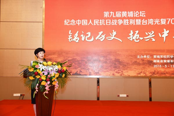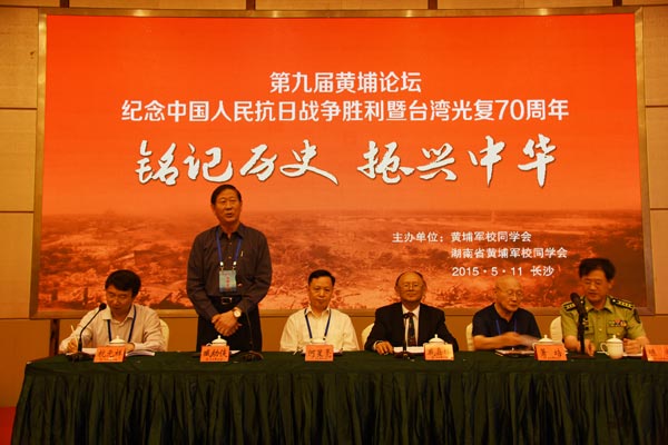 中國臺灣網5月11日長沙訊 (記者 李桂英)由黃埔軍校同學會和湖南省黃埔軍校同學會聯合舉辦的紀念中國人民抗日戰爭勝利暨臺灣光復70周年第九屆黃埔論壇,于5月11日在湖南長沙舉行,兩岸150余位有關人員共聚一堂,以“銘記歷史,振興中華”為主題,共憶當年抗戰崢嶸烽火,共商共圓中國夢。