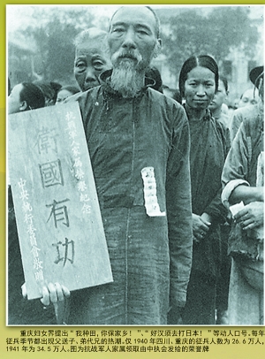 抗戰(zhàn)時(shí)期,重慶城究竟有多少人走上了救國(guó)的戰(zhàn)場(chǎng)?據(jù)張榮祥介紹,每到征兵季節(jié),重慶城都會(huì)出現(xiàn)父送子、弟代兄的熱潮。僅1940年四川、重慶的征兵人數(shù)就有26.6萬人,1941年更是達(dá)到了34.5萬人。