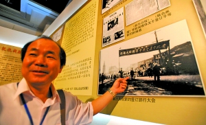 臺(tái)灣嘉賓邵銘煌介紹,這張珍貴的照片是他提供的。 記者 鞠芝勤 攝