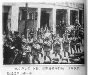 1939年2月10日,日軍占領海口后,日軍儀仗隊經過中山路一帶。 (資料圖片)