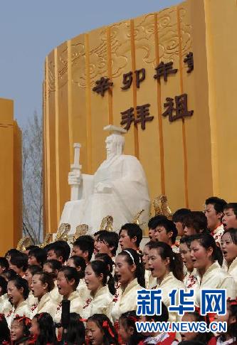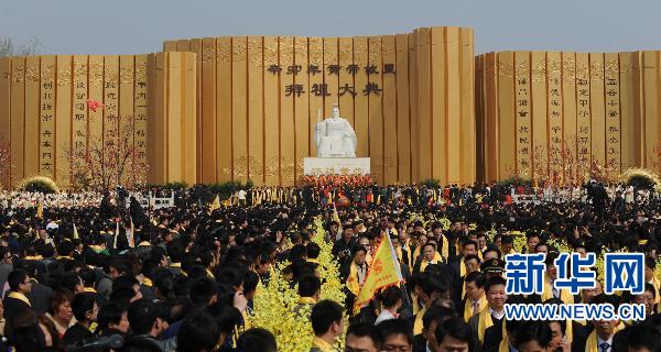2011年4月5日是農歷三月初三,辛卯年黃帝故里拜祖大典在河南新鄭舉行,來自海內外19個國家和地區的萬余名炎黃子孫匯聚一堂,共同祭拜中華民族的人文始祖軒轅黃帝。史料記載,河南新鄭是中華民族人文始祖軒轅黃帝出生、創業、建都之地,“三月三”在新鄭黃帝故里公拜軒轅黃帝,是中華民族的傳統大典。新華社記者趙鵬攝