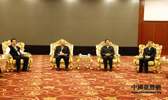 4月10日下午,河南省政協(xié)主席葉冬松在鄭州會(huì)見了參加癸巳年黃帝故里拜祖大典的臺(tái)灣統(tǒng)派人士和退役將領(lǐng)參訪團(tuán)。(中國(guó)臺(tái)灣網(wǎng) 李丹 攝)