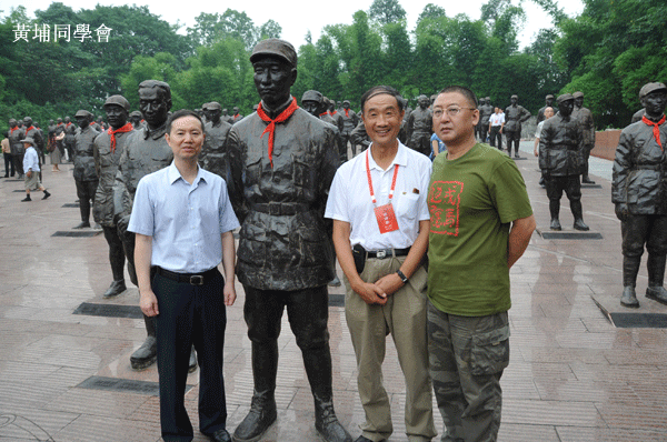 徐小巖(右二)在父親徐向前雕塑前與樊建川(右一)合影