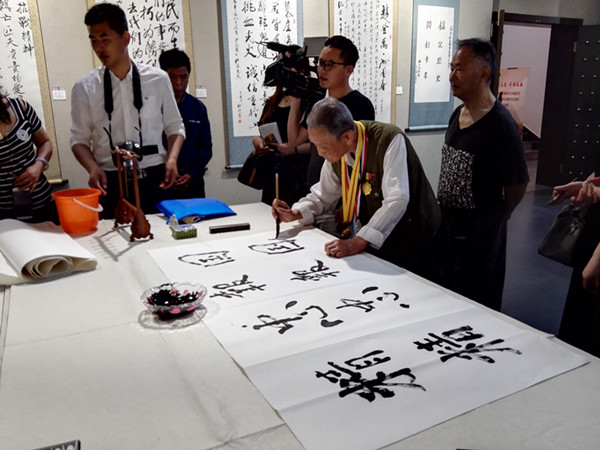 開幕式結束后,舉辦書畫筆會活動。與會者以極大的熱情揮毫潑墨,表達了對包括黃埔師生在內的全體抗戰將士的崇高敬意以及共同實現民族復興的美好愿景。