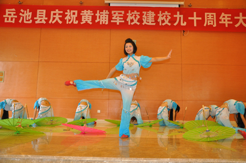 6月16日,岳池縣以座談會、文藝演出等形式隆重慶祝黃埔軍校建校九十周年。圖為岳池縣義工職校舞蹈隊表演的民族舞《傘舞飛揚》。