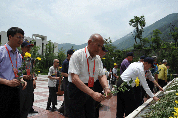 2013年6月19日,參加第七屆黃埔論壇的兩岸部分黃埔同學、大陸知名黃埔后代和各地黃埔軍校同學會代表近百人到四川映秀地震遺址,向汶川特大地震遇難同胞表示悼念。